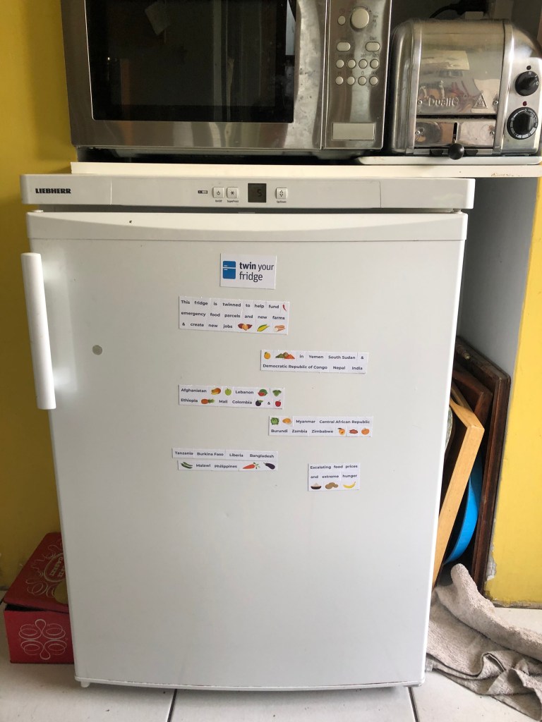 This week we twinned our fridge (having already through the auspices of TearFund twinned out toilets and rubbish bins). Our fridge is never unintentionally empty, there is always enough food in the house for us to eat. We have never experienced the hunger that comes from not knowing where your next meal will come from. Twinning our fridge is a reminder to us that we are in world terms, exceptionally fortunate and that at the very least we should be willing to contribute towards the cost of feeding those who know real hunger.