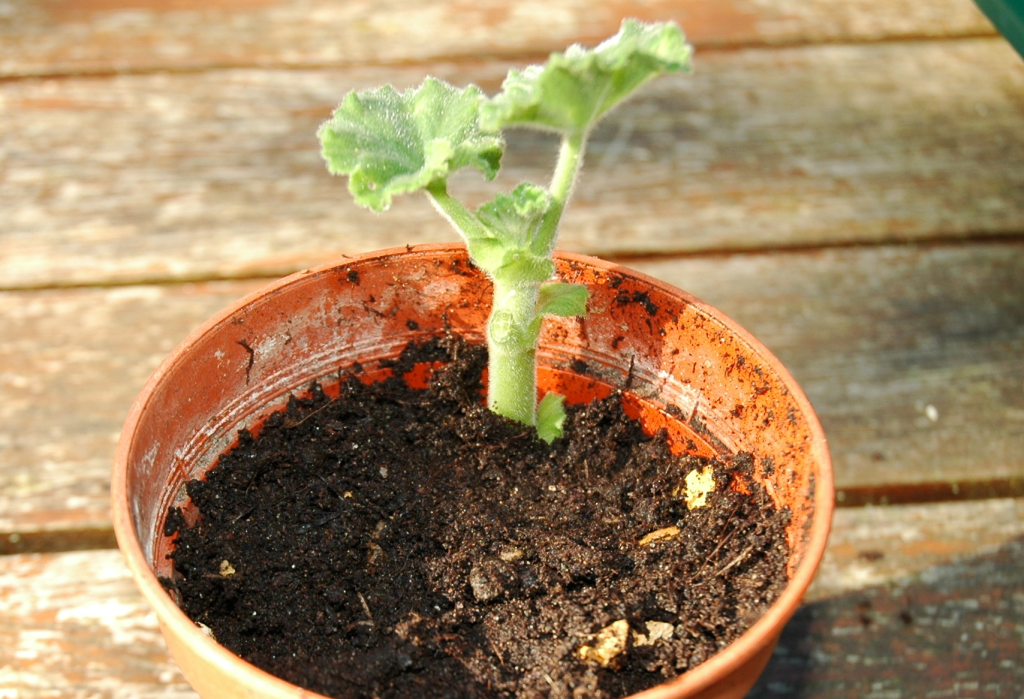 Action 60: Make geranium cuttings. By cutting of a healthy branch from a geranium plant, and potting it up, you can grow a whole new plant. These can be overwintered indoors ready for the spring.