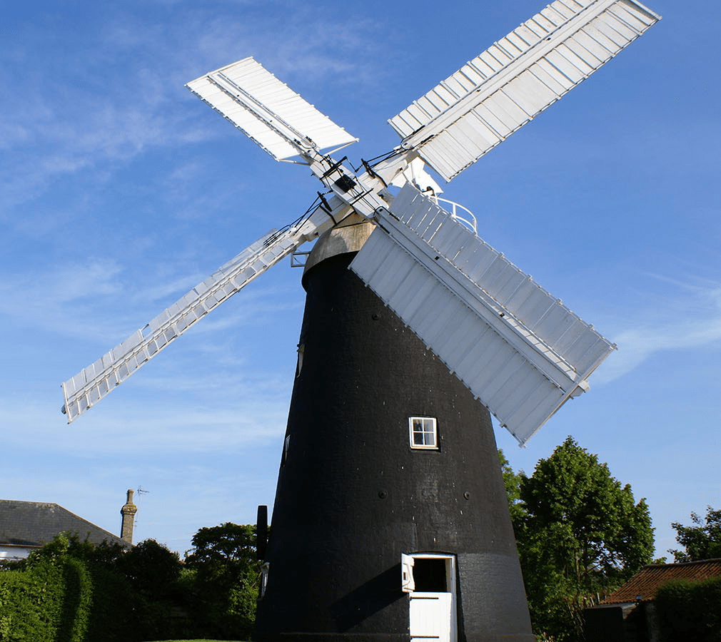 Fossil fuel energy we know causes air pollution and CO2 pollution whilst other sources of power do not have the same damaging consequences. One such clean energy source is wind – and wind farms are growing around our coasts – but how about that older type of windmill, the one used to mill flour?