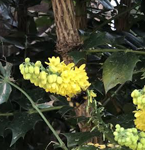 Keep a look out when you are outside – there is lots of wild life to see: starlings and blue tits on the bird feeders, robins in the trees and even bumble bees. These bees don’t hibernate but rely on winter flowering plants.