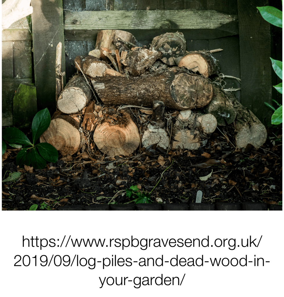 The trunk you can use to make, or to add to, a log pile for garden wild life. For more nature friendly ideas for the garden see – https://greentau.org/2021/10/04/eco-tips-10/