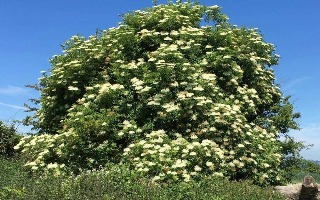 The elder tree – sambucus niger – is often more a bush than a tree. It can grow to a height of 15m and has a life span of some 20 years. Its flowers provide nectar for many insects, its leaves food for caterpillars, and its fruit food for birds and small mammals. The flowers are fragrant and used to flavour cordials, whilst the fruit which is rich in vitamin C can be used for jellies, fruits pies, cordials and wine making.