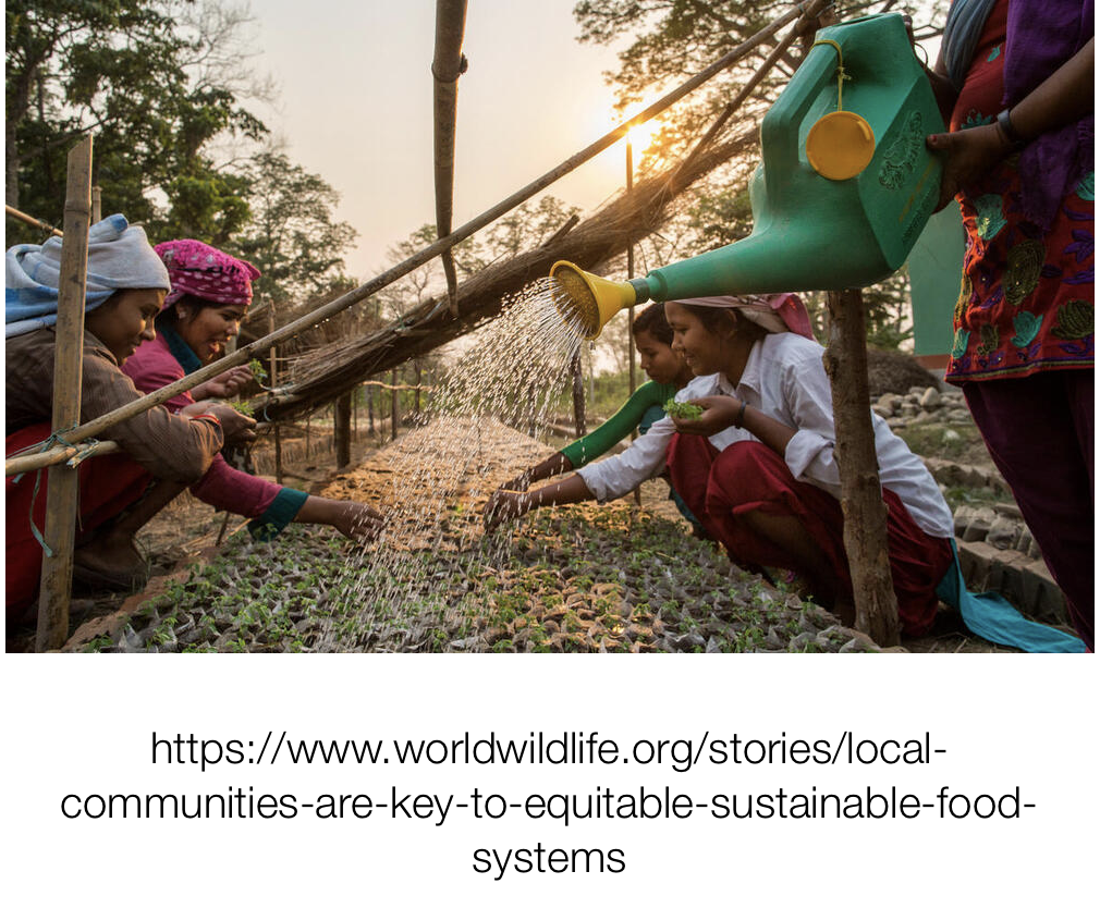 According to the WWF, ‘Local communities are key to equitable, sustainable food systems’. They see working with local communities is the best way of developing climate resilient farming practices that enable communities to feed themselves. The charity Practical Action takes a similar approach using on the philosophy of Dr E. F. Schumacher that ‘small is beautiful’. The Fair Trade movement also puts communities at the heart of its work. Supporting groups like these and opting for fair trade products are ways of creating a sustainable world.