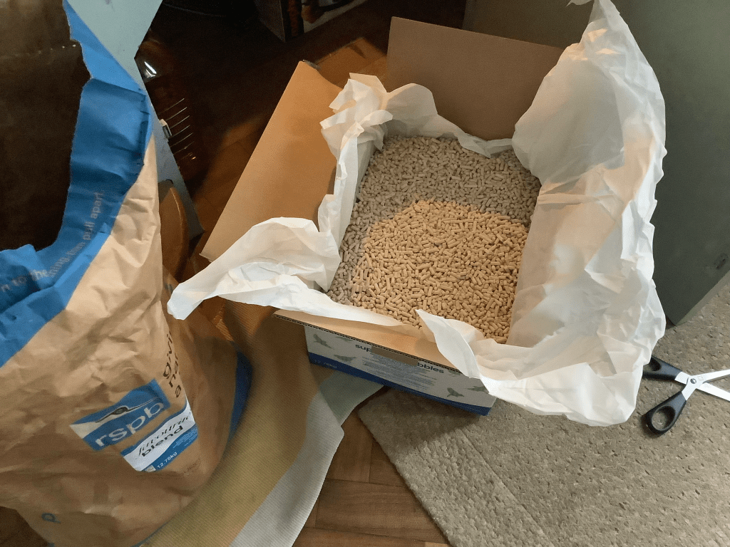 Zero waste and plastic free are two main objectives in our daily living so I am really pleased to,find that. The RSPB’s fatty nibbles for birds now comes in all paper rather than plastic packing! Card and paper I will recycle with an easier conscience than plastics. And by buying the largest size I am minimising the total packaging footprint.
