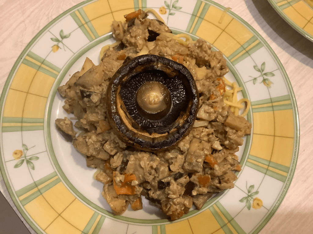 Meanwhile cook some pasta and (separately) fry a couple of portobello mushrooms.