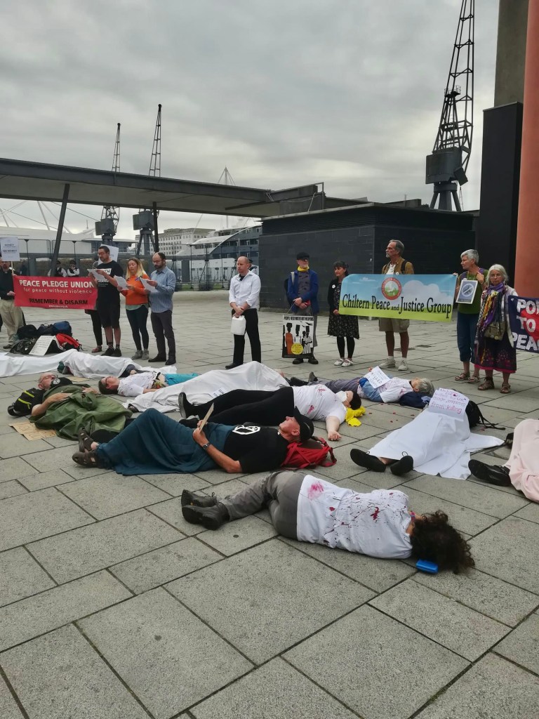 Yesterday I took part in a peace vigil outside the Excel Centre which was hosting the DESI arms fair. The names of just a few of those who have been killed by military armaments were slowly read out accompanied by a slow drum beat. Armaments kill people. They also kill birds and animals, destroy trees and plants, and pollute soils and water ways. Their noise disrupts the migratory movements of birds and other creatures including migrating sea creatures.