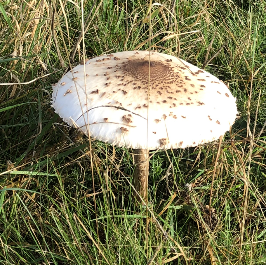 I came across a tip from the RSPB yesterday that cutting grass in early autumn will enable the fungi to grow and fruit. And today I noticed in Richmond Park where the still green bracken had been cut back, that some beautiful parasol mushrooms had popped up!