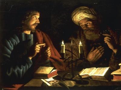 This sense of the two protagonists debating together is captured in a picture by the 17th century artist, Crijn Henricksz Volmarijn. Here by the aid of candlelight Jesus and Nicodemus sit together with several books on the table in front of them. Jesus is using his fingers to enumerate the points he is making.