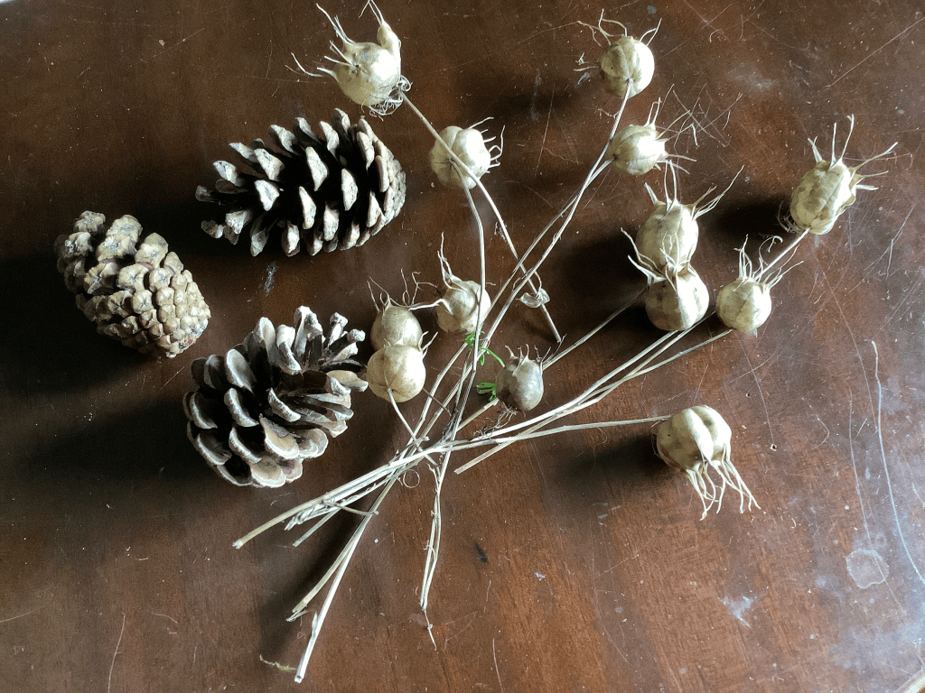 The autumnal leaves are turning into a wide range of colours from lime yellow to brassy red. I have been collecting some of them – ones that have a particularly attractive shape or colour – and am flattening them between the pages of a heavy book. Next month, when it’s actually Christmas I will thread them together with thread to make garlands.