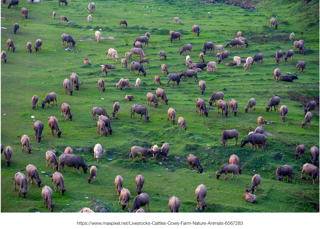 Globally 77% of agricultural land is used to raise livestock. This includes land used to grow animal feed. Yet this 77% produces less than 20% of the world’s calories. Land used for livestock could be better used to produce plant based food that would feed a greater number of people and/ or rewilded to increase biodiversity. Factoring in the carbon footprint of livestock, especially cattle, there are even more benefits to be gained from reducing livestock levels.